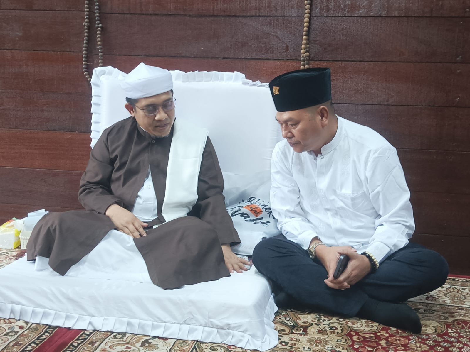 Teks foto : Nikson Nababan dengarkan pesan yang disampaikan Tuan Guru Besilam Syekh Zikmal Fuad, di Langkat,Selasa (7/5/2024)