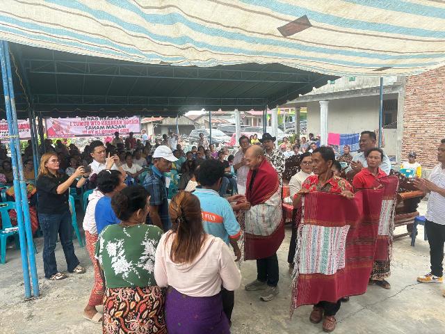 ASAHAN,Sinarsergai.com- Masyarakat Desa Perbangunan, Kecamatan Sei Kepayang, Kabupaten Asahan sambut kedatangan Calon Gubernur Sumatera Utara (Cagubsu) Dr.Nikson Nababan dengan semangat dan Tarian Tortor, Minggu (30/6/2024). Masyarakat tak menyangka, Mantan Bupati Tapanulis Utara ini menginjakan kakinya di kampong ini. Ungkapan bahagia langsung disampaikan kepada Nikson berupa Selamat datang ke kampung ini.