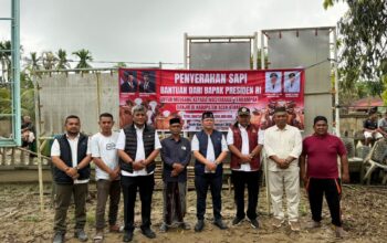 (Teks foto : Ketua SMSI Sergai Zuhari memberikan bantuan Beras,Gula Pasir dan Minyak Goreng kepada Poniyah dan Ponirem,pasangan suami istri yang kehidupannya susah,Minggu (11/5/2025)