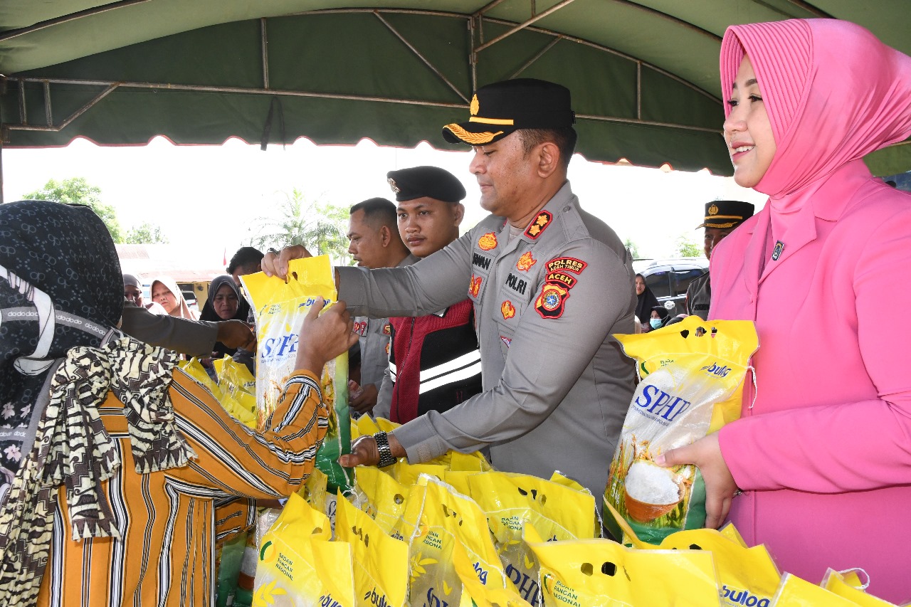 Aceh Timur- Dalam upaya menjaga stabilitas pasokan dan harga pangan, Polres Aceh Timur, Polda Aceh bersama jajaran polsek melaksanakan Gerakan Pangan Murah (GPM) dengan menyediakan total 26 ton beras Stabilisasi Pasokan dan Harga Pangan (SPHP) bagi masyarakat.