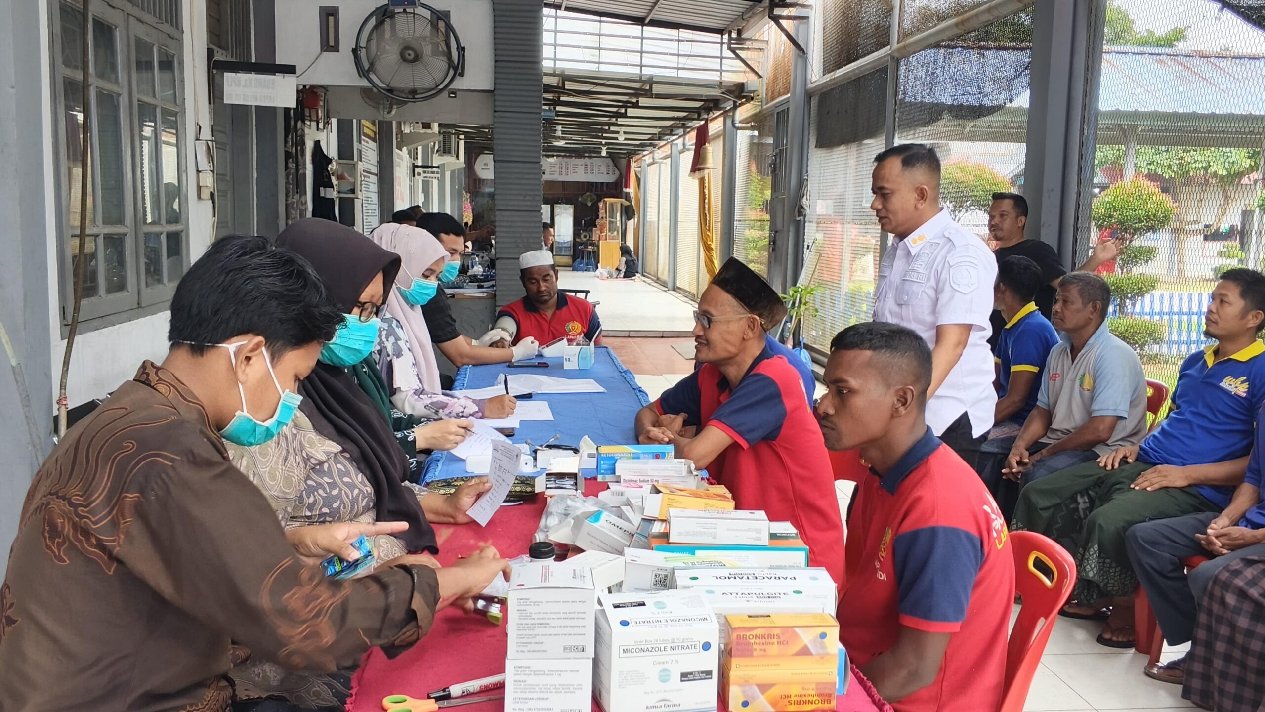 Kegiatan pemeriksaan ini dilaksanakan oleh Petugas Puskesmas Idi Rayeuk yang terdiri dari 1 Tenaga Dokter, 2 Tenaga Perawat, dan 2 Tenaga Apoteker dengan didampingi oleh Kasi Binadik Giatja Lapas Kelas IIB Idi, Bapak T. Dermawan, S.H., M.H. beserta Pejabat Struktural, Staf, dokter, dan Perawat Lapas Idi, serta dalam pengawasan Petugas Pengamanan yang sedang bertugas.