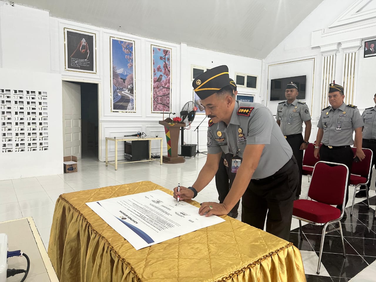 Banda Aceh, sinar sergai com Dalam rangka menindaklanjuti Surat Nomor : PAS-UM.01.01-450 Tentang Penandatanganan Komitmen Bersama Jajaran Pemasyarakatan, dengan ini, Kepala Lapas Kelas IIA Banda Aceh, Edi Cahyono, beserta Jajarannya, mengikuti kegiatan Penandatanganan Komitmen Bersama Petugas Pemasyarakatan secara zoom, senin (20/10/2025).