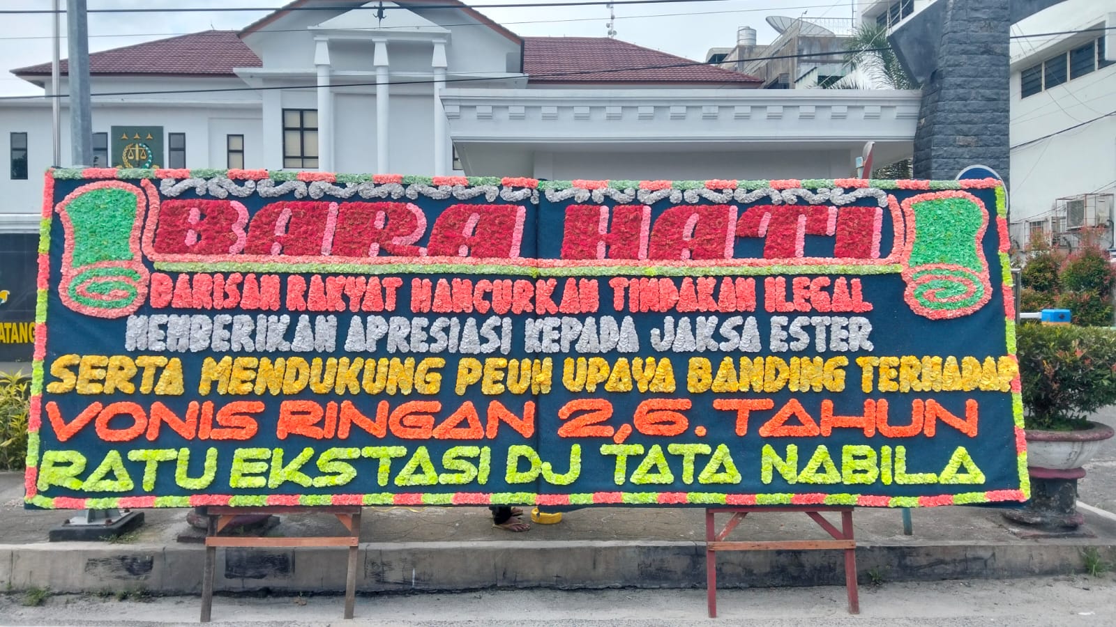 Dukung Jaksa Ester dan Desak Hukuman Berat untuk DJ Tata Nabila Cs,BARA HATI Kirim Papan Bunga ke Kejari dan Pengadilan