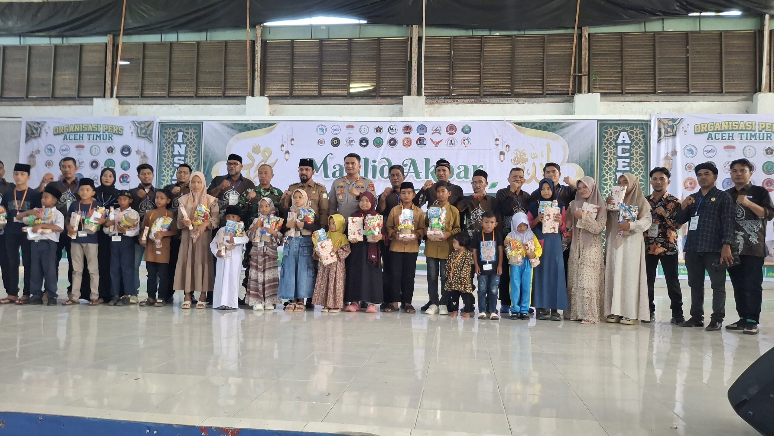Aceh Timur, sinar sergai com. Insan pers lintas organisasi di Kabupaten Aceh Timur sukses menggelar Maulid Akbar NabiMuhammad SAW. pada Selasa, 28 Oktober 2025, bertempat di Idi Sport Center (ISC), Desa Titi Baro, Kecamatan Idi Rayeuk, Kabupaten Aceh Timur.