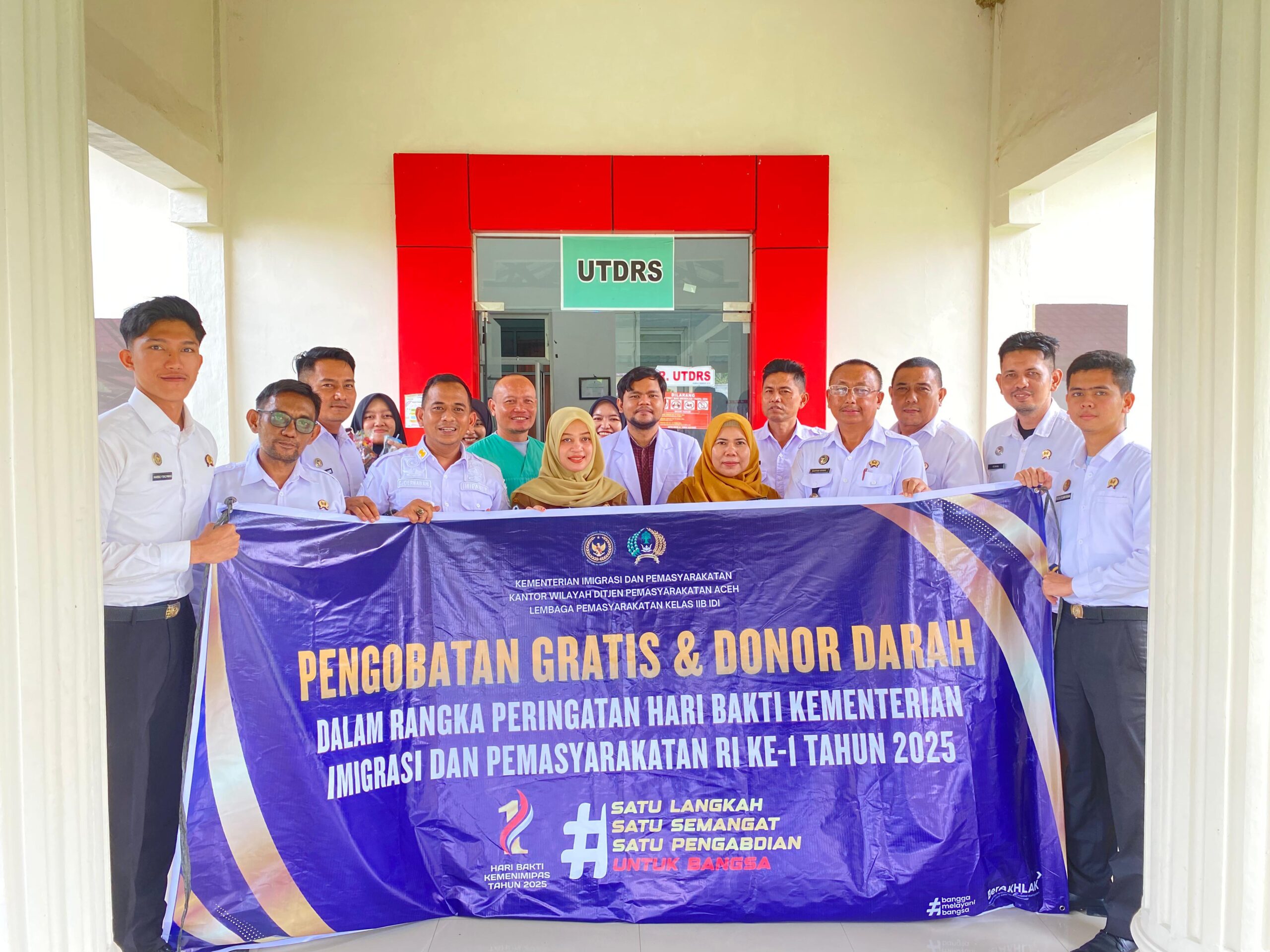 Aceh Timur, sinar sergai com.Dalam rangka memperingati Hari Bhakti Kementerian Imigrasi dan Pemasyarakatan ke-1 Tahun 2025, Lapas Kelas IIB Idi menyelenggarakan kegiatan sosial berupa donor darah yang dilaksanakan pada Kamis, (13/11) di Unit Donor Darah Rumah Sakit Umum Daerah Zubir Mahmud (RSUDZM).