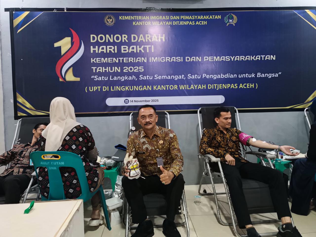 Banda Aceh, sinar sergai com. Dalam rangka memperingati Hari Bakti Kementerian Imigrasi dan Pemasyarakatan Ke-1 Tahun 2025, Kantor Wilayah Direktorat Jenderal Pemasyarakatan Aceh menyelenggarakan rangkaian kegiatan sosial secara bersamaan, yang meliputi Donor Darah,Pengobatan Gratis, dan Bakti Sosial. Seluruh kegiatan berlangsung di lingkungan Rutan Kelas IIB Banda Aceh, Jumat (14/11/2025).