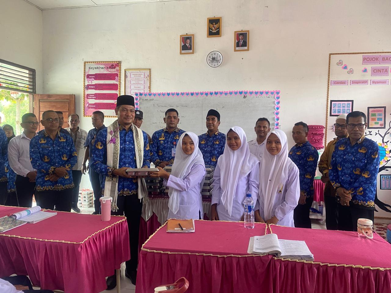 Setelah launching di Meunasah Lubok, Wakil Bupati bersama unsur Muspika Pante Bidari melanjutkan kegiatan dengan menyerahkan paket perdana Makan Bergizi Gratis kepada para siswa di SMPN 1 Pante Bidari, Gampong Meunasah Teungoh.