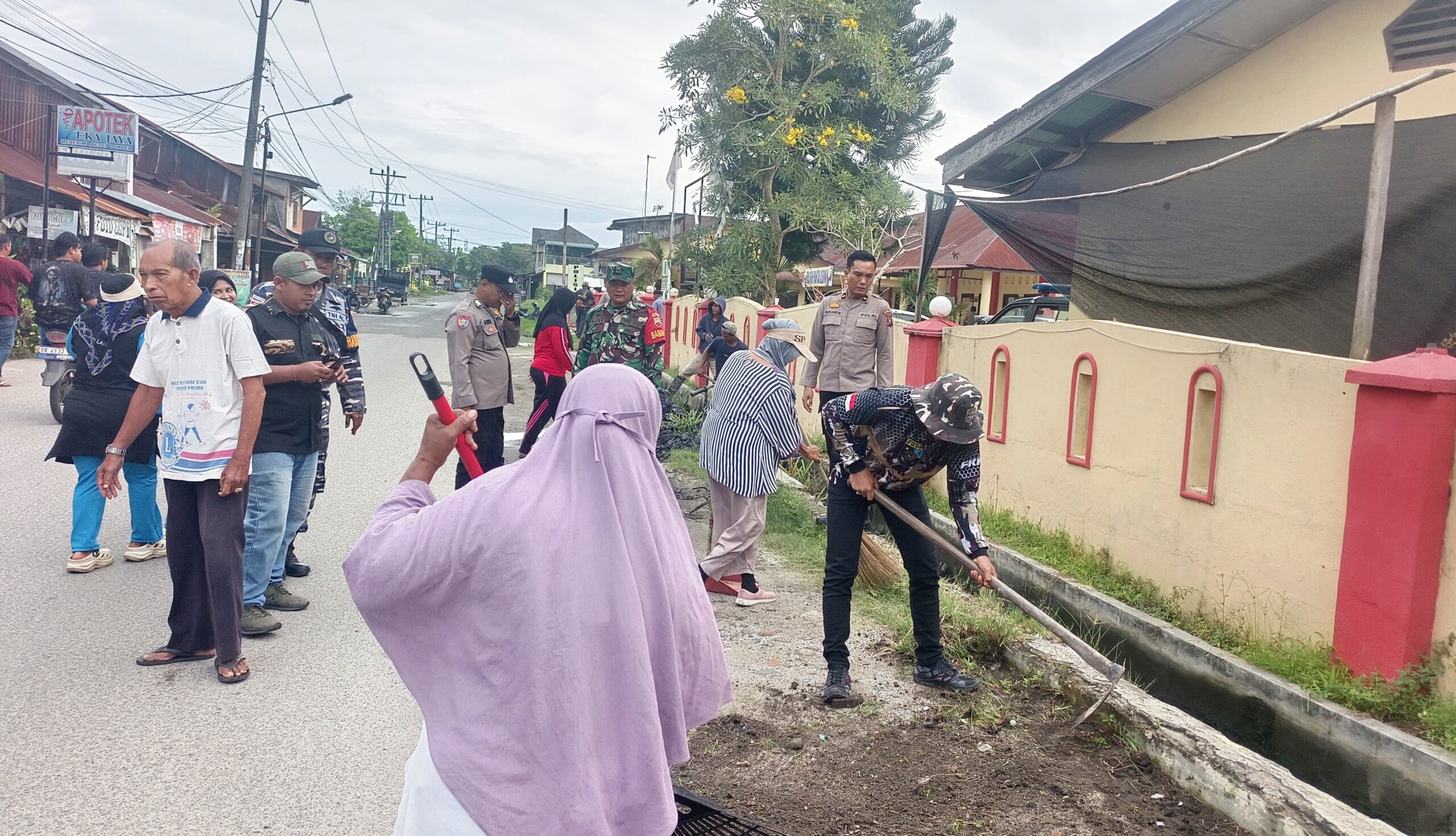 Wujudkan Kebersihan Lingkungan, Polsek dan Koramil Pantai Cermin Bersama Masyarakat Gotongroyong