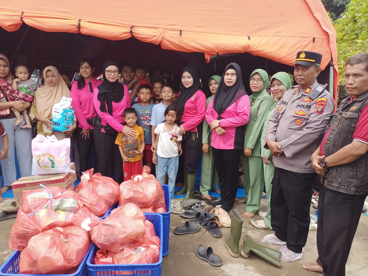 Ketua Bhayangkari Cabang Langkat, Ny. Ayu David Triyo Prasojo menyampaikan, Kami hadir untuk memberikan dukungan dan meringankan beban para pengungsi yang terdampak banjir.