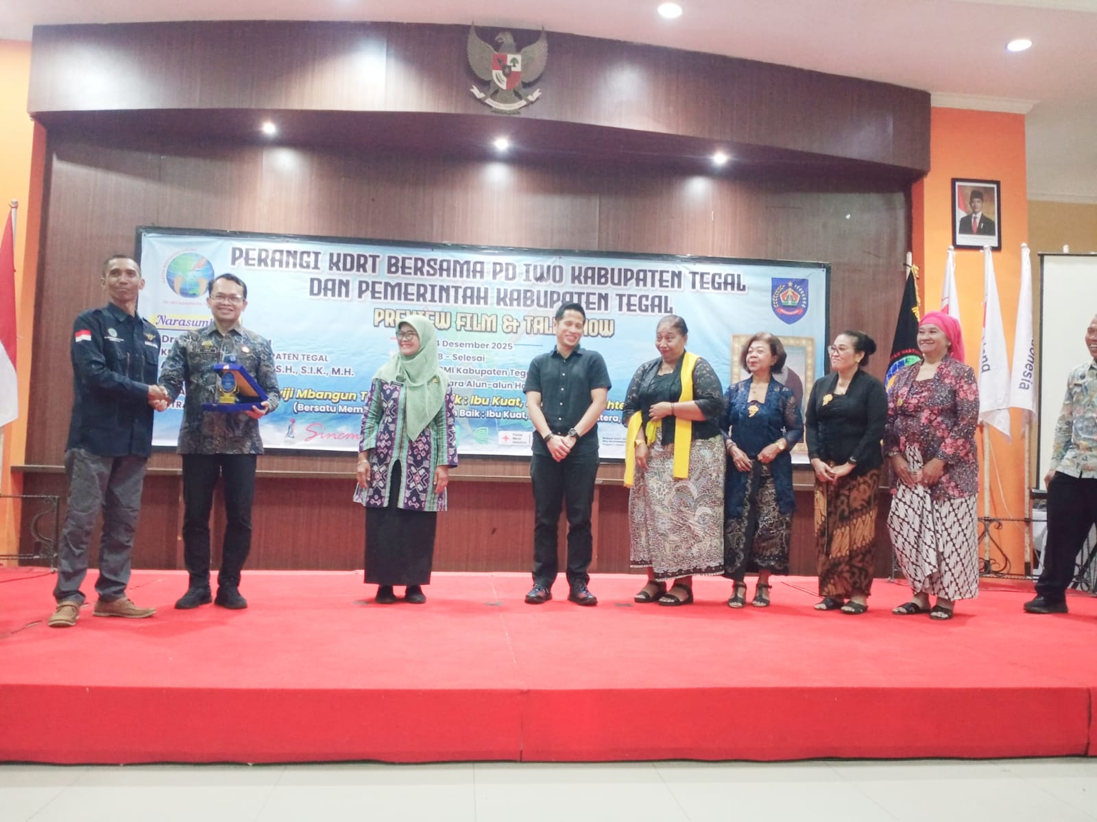 TEGAL sinar sergai com. Pemerintah Kabupaten Tegal bersama Ikatan Wartawan Online (IWO) Kabupaten Tegal dan Komunitas Perempuan Berkebaya menyelenggarakan acara Preview Film “Suamiku Lukaku” dan Talkshow dengan tema “Nyawiji Mbangun Tegal Luwih Apik: Ibu Kuat, Keluarga Sejahtera, KDRT Minggat!”.