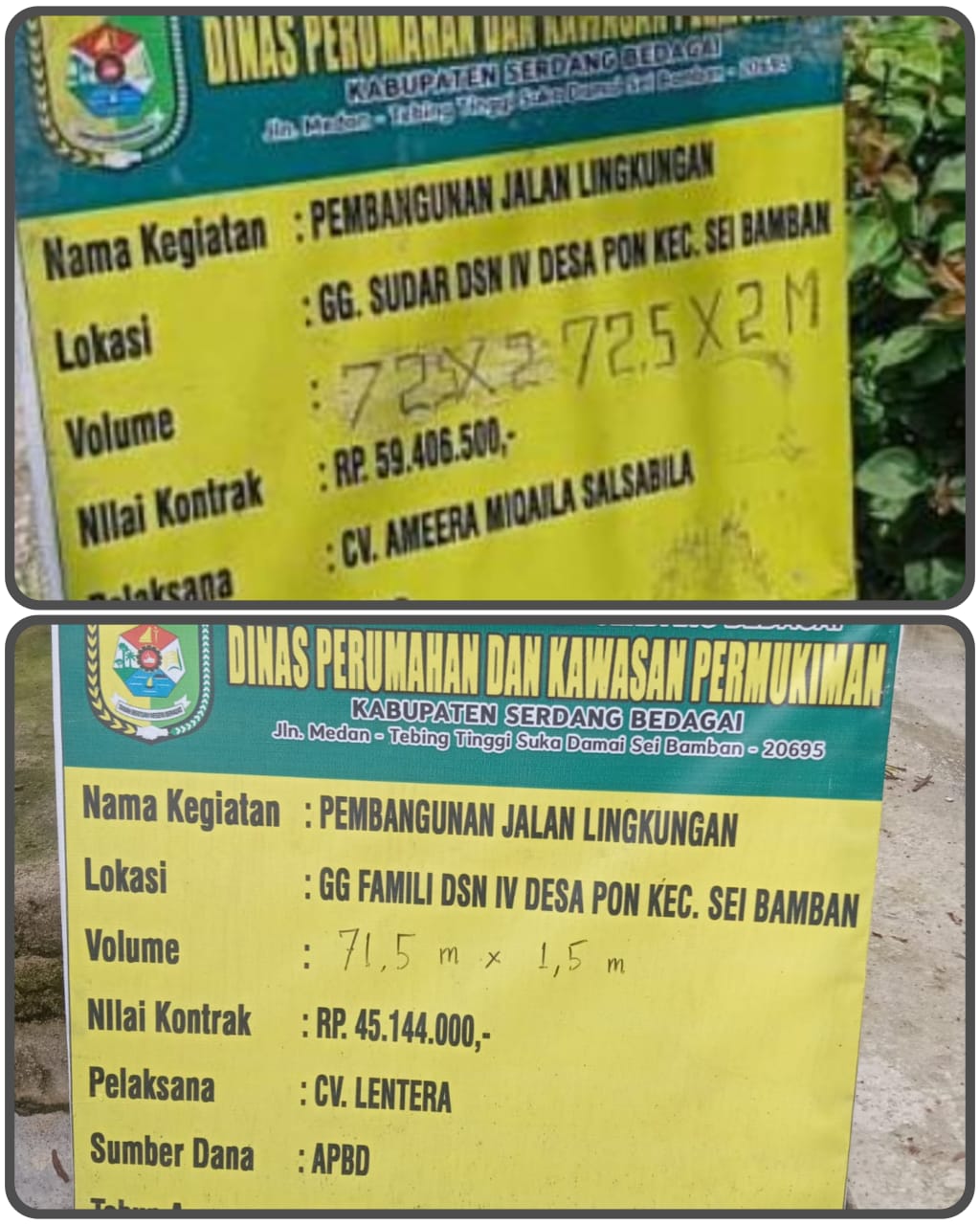 “Pengaduan ini merupakan tindaklanjuti dari harapan kaum ibu yang berdomisili di Gang Rukun Dusun IV Desa PON, Kecamatan Sei Bamban, yang merasa sangat kecewa terhadap hasil pembangunan proyek Jalan Rabat Beton yang disebut-sebut dilaksanakan oleh CV. Ameera Miqaila Salsabila dengan anggaran diperkirakan mencapai Rp. 59 juta lebih, bersumber dari dana APBD Tahun 2025, dialokasikan Dinas Perumahan dan Pemukiman (Perkim) Sergai.”