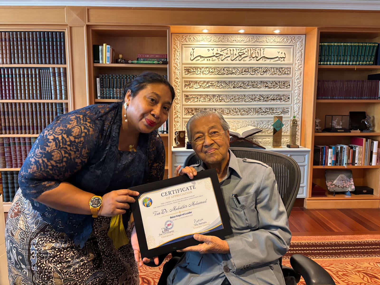 Penghargaan dari IWO kepada Tun Dr. Mahathir Mohamad diserahkan oleh Sekretaris Jenderal (Sekjen) IWO Telly Nathalia di kantor tokoh berpengaruh Asia itu di Yayasan Kepemimpinan Perdana di Putrajaya.