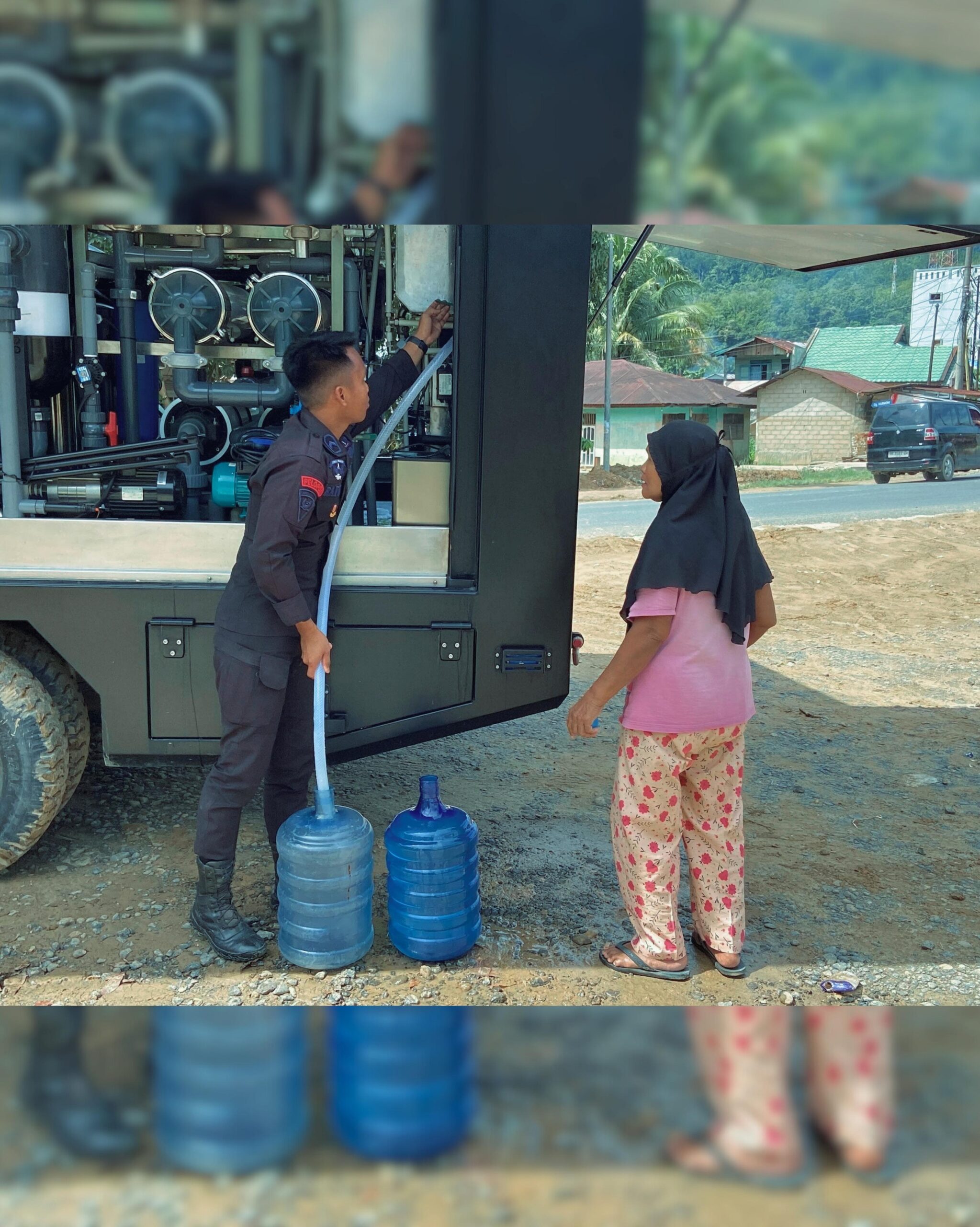 Sementara itu, di Desa Sibuluan Nalambok, Kecamatan Sarudik, 1 SSR Personel SAR Batalyon A di bawah pimpinan Bripda Franky melaksanakan pendistribusian air bersih kepada warga dengan menggunakan alat water treatment milik Satbrimob Polda Sumut. Kehadiran fasilitas tersebut sangat membantu masyarakat dalam memenuhi kebutuhan air bersih sehari-hari.