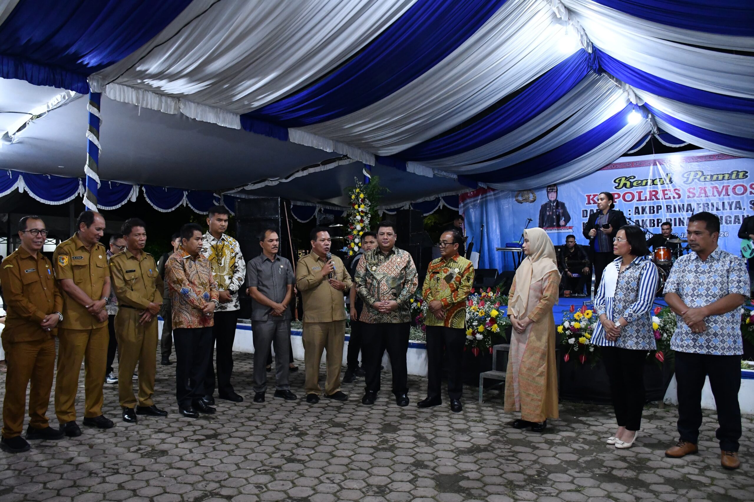 Acara pisah sambut berlangsung di Rumah Dinas Bupati Samosir, Senin (12/1/2026), dihadiri unsur Forum Koordinasi Pimpinan Daerah (Forkopimda), tokoh agama, tokoh adat, perwakilan organisasi kemasyarakatan, dan insan pers.