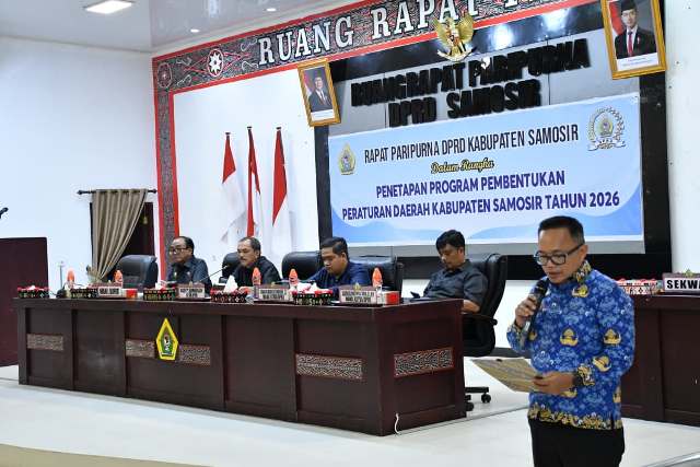 SAMOSIR,Sinarsergai.com – Pemerintah Kabupaten Samosir bersama DPRD menyepakati 11 Program Pembentukan Peraturan Daerah (Propemperda) Tahun 2026. Penetapan dilakukan melalui rapat paripurna di Gedung DPRD Samosir, Senin (19/01/2026), dan ditandatangani Ketua DPRD Nasip Simbolon.
