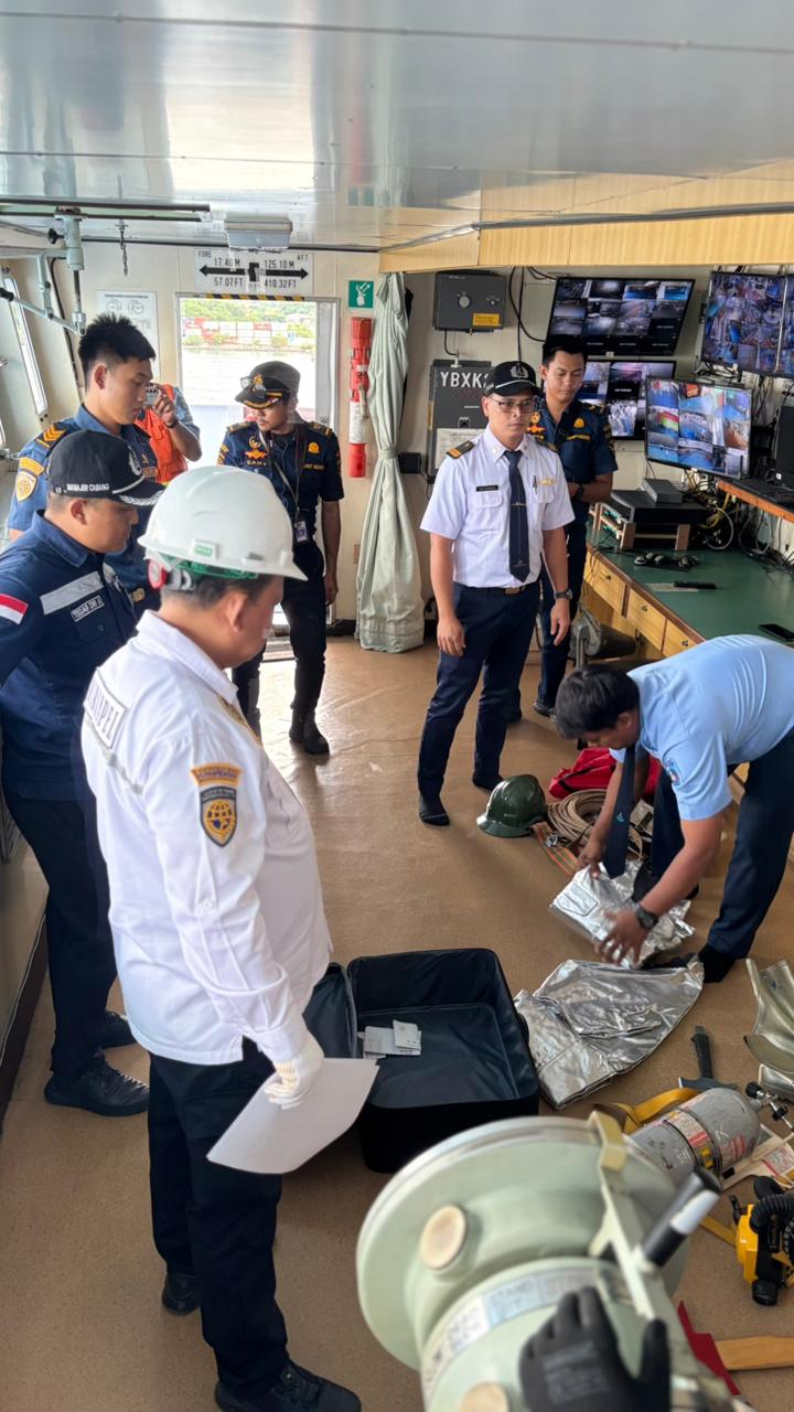 Pemeriksaan dilaksanakan secara menyeluruh mencakup verifikasi dokumen kelaiklautan kapal, pemeriksaan kondisi fisik kapal, alat keselamatan jiwa, alat navigasi, perlengkapan darurat, serta penerapan standar manajemen keselamatan pelayaran, sesuai dengan ketentuan peraturan perundang-undangan yang berlaku.