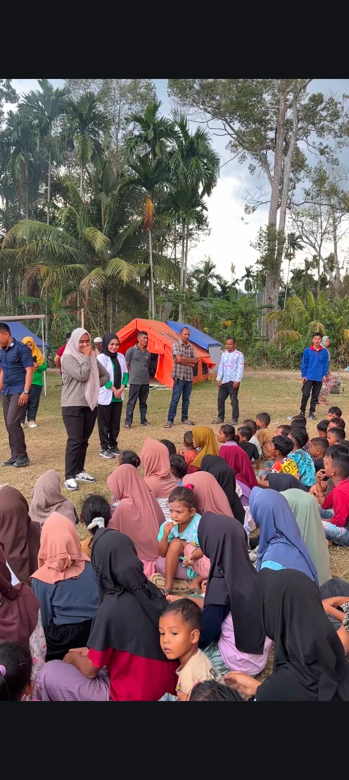 Kegiatan ini dilaksanakan pada Kamis, 29 Januari 2026, di lokasi pengungsian korban banjir Riseh Tunong. Suasana hangat dan penuh keakraban terasa sejak awal kegiatan. Anak-anak tampak antusias mengikuti berbagai permainan sederhana, bernyanyi, dan berinteraksi bersama petugas. Tawa yang perlahan muncul menjadi tanda bahwa mereka mulai merasa nyaman dan diperhatikan.
