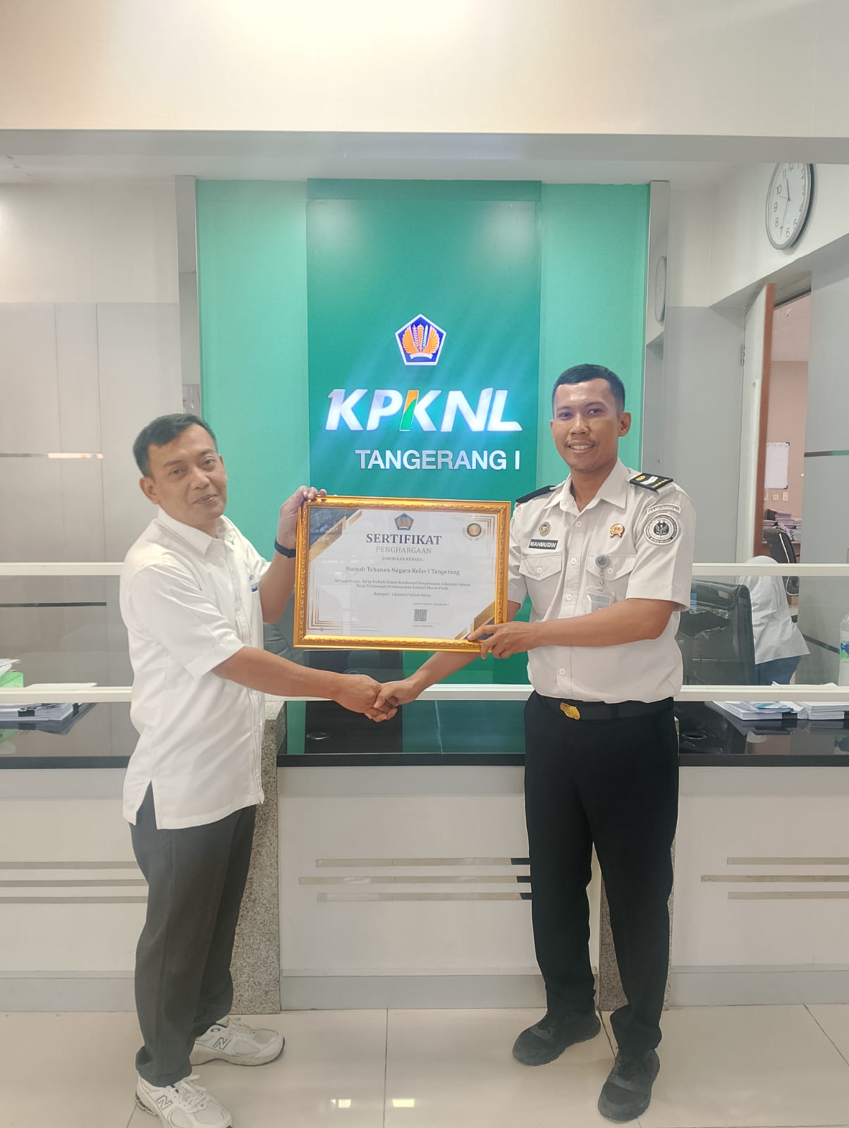 Penghargaan ini diberikan kepada Rutan Kelas I Tangerang sebagai Satuan Kerja Terbaik dalam Kolaborasi Penyelesaian Likuidasi BMN pada satuan kerja terdampak pembentukan Kabinet Merah Putih, sebagai bentuk apresiasi atas kinerja, kepatuhan, serta sinergi yang baik dalam pengelolaan aset negara.