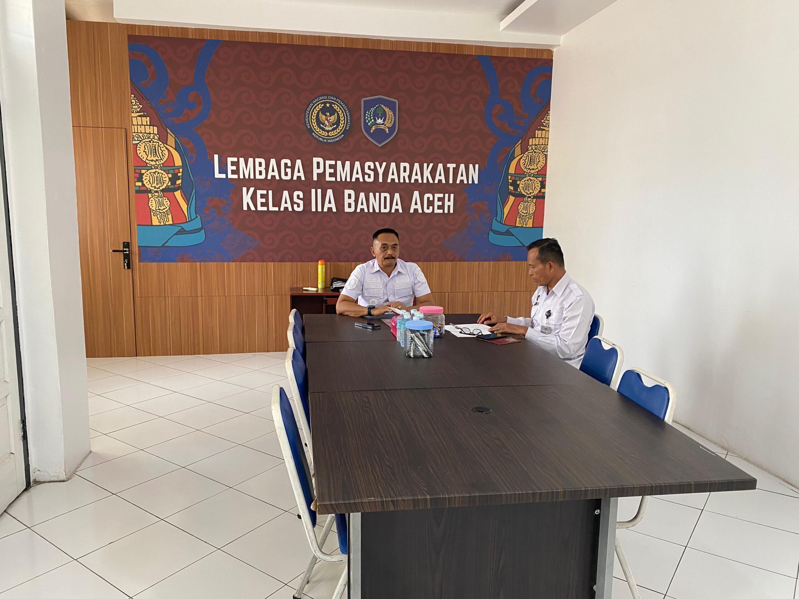BANDA ACEH, Sinarsergai.com-Kepala Lembaga Pemasyarakatan (Kalapas) Kelas IIA Banda Aceh, Edi Cahyono, didampingi Kasi Kegiatan Kerja (Giatja) mengikuti Rapat Koordinasi Pelaksanaan Penempatan Display Hasil Karya Warga Binaan Pemasyarakatan (WBP) pada lokasi pelayanan keimigrasian, Rabu (04/02/2026).