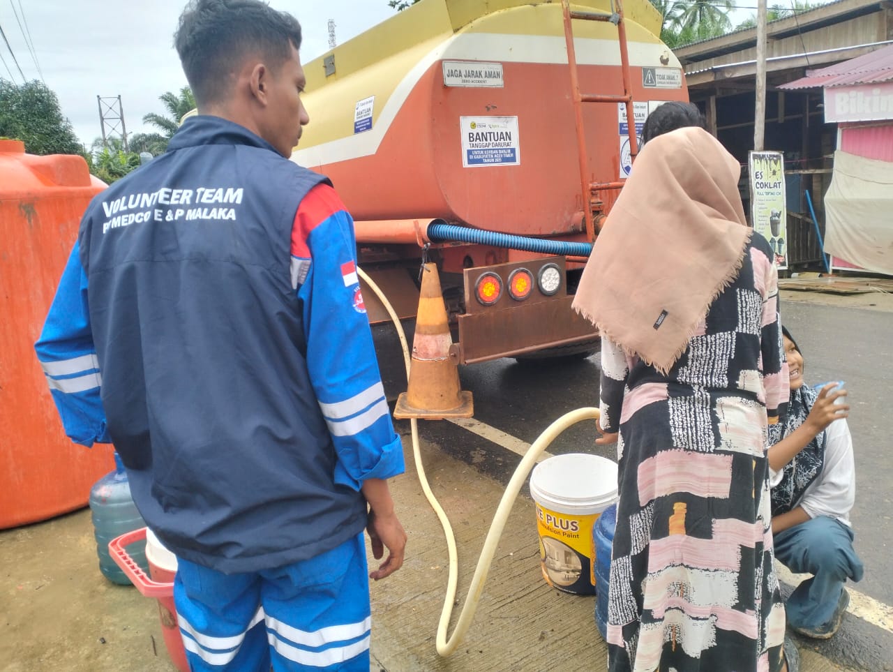 ACEH TIMUR, Sinar sergai.com-4 Februari 2026 — PT Medco E & P Malaka (Medco E&P) bersama Badan Pengelola Migas Aceh (BPMA) terus berperan aktif dalam upaya pemulihan dampak bencana hidrometeorologi yang melanda Kabupaten Aceh Timur. Air bersih hingga saat ini menjadi salah satu kebutuhan korban bencana tersebut, karena itu salah satu bentuk dukungan tersebut melalui pendistribusian sebanyak 1,13 juta liter air bersih bagi masyarakat di 56 desa terdampak yang tersebar di lima kecamatan.