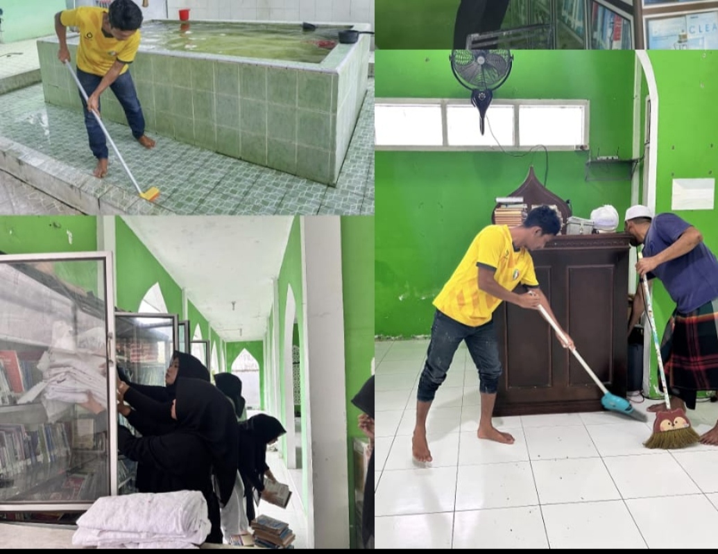 Dengan penuh semangat, Kasubsi Bimkemaswat, Dodi Hardimas, bersama Peserta Magang dan para Warga Binaan membagi tugas. Sebagian menyapu dan mengepel lantai, merapikan dan menata ulang seluruh buku pada rak, sementara yang lain membersihkan kipas angin dan area plafon. Pembersihan dilakukan secara menyeluruh, baik di bagian dalam dan luar masjid, tempat wudhu hingga kamar mandi sehingga suasana ibadah diharapkan semakin nyaman bagi WBP pada saat Ramadan tiba.