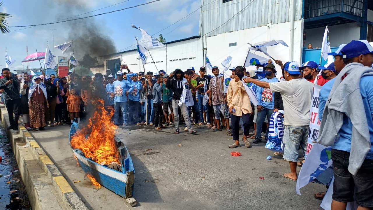 MEDAN, Sinarsergai.com-Kesatuan Nelayan Tradisional Indonesia (KNTI) Sumatera Utara menggelar aksi damai menolak kegiatan reklamasi dan pelebaran pelabuhan di kawasan Pelabuhan Perikanan Samudera (PPS) Belawan. Sekitar 2.000 massa yang terdiri dari nelayan tradisional, perempuan pesisir, dan pemuda terlibat dalam aksi yang berlangsung di Belawan I, Nelayan Indah, kawasan Pelabuhan, dan Marelan. PPS Belawan pada utamanya digunakan untuk operasional nelayan besar dan kapal-kapal industri seperti kapal purse chain dan pukat cincin.