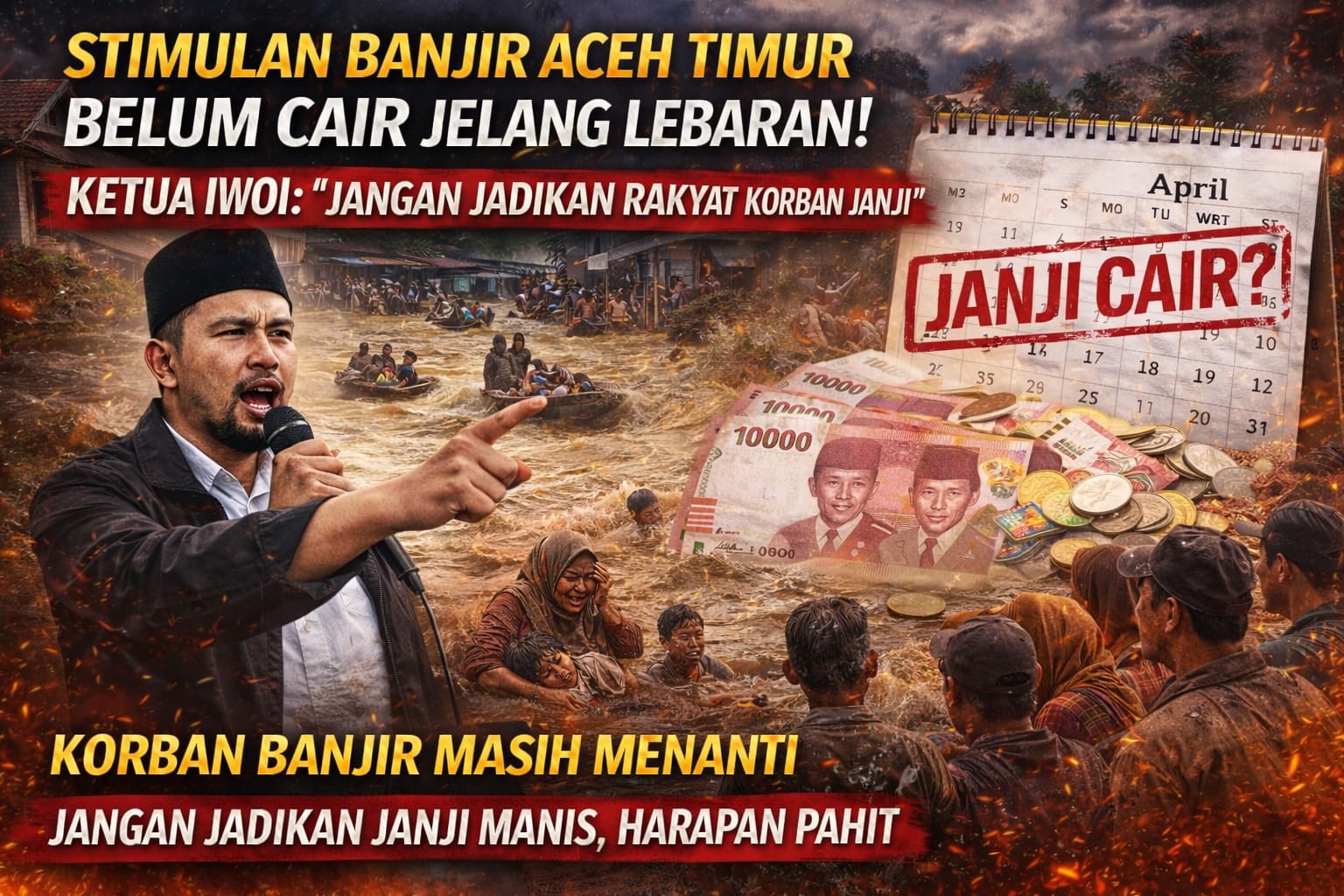 ACEH TIMUR, Sinar sergai.com-Menjelang Hari Raya Idulfitri, bantuan stimulan bagi korban banjir di Kabupaten Aceh Timur hingga kini belum juga cair. Kondisi ini memicu kekecewaan dan kemarahan masyarakat yang telah menunggu lebih dari tiga bulan sejak bencana banjir melanda wilayah tersebut.