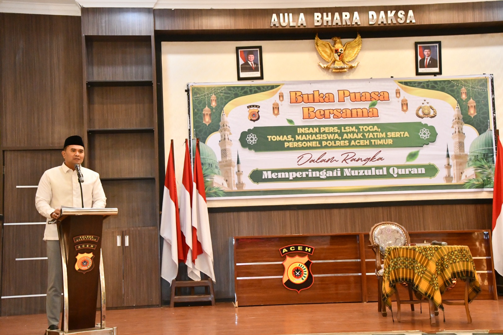 Selanjutnya Kapolres Aceh Timur menyampaikan sambutan yang menekankan pentingnya menjaga silaturahmi dan sinergi antara Kepolisian dengan seluruh elemen masyarakat.