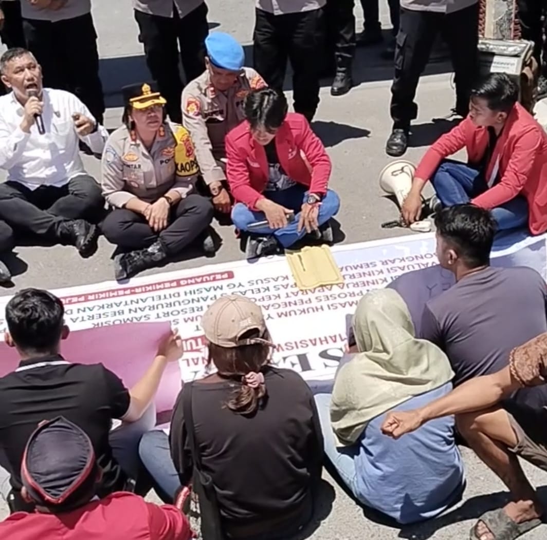 Sementara itu, Kapolres Rina Taringan juga menerima langsung perwakilan massa. Ia menyampaikan bahwa pihak kepolisian menghargai penyampaian aspirasi masyarakat secara tertib dan damai serta akan mempelajari setiap informasi tambahan yang diberikan.