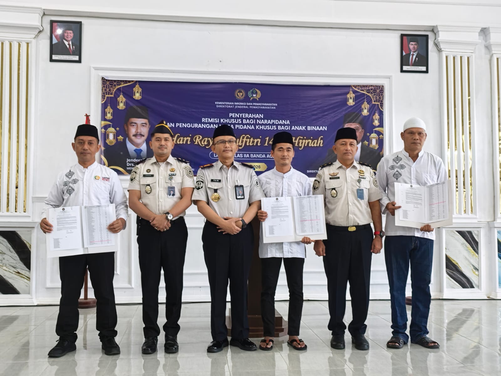 BANDA ACEH, Sinarsergai.com-Dalam momentum peringatan Hari Raya Idul Fitri 1447 H Tahun 2026, Kementerian Imigrasi dan Pemasyarakatan melalui Direktorat Jenderal Pemasyarakatan Aceh memberikan pengurangan masa pidana (Remisi) kepada Warga Binaan Pemasyarakatan, Sabtu (21/03/2026).