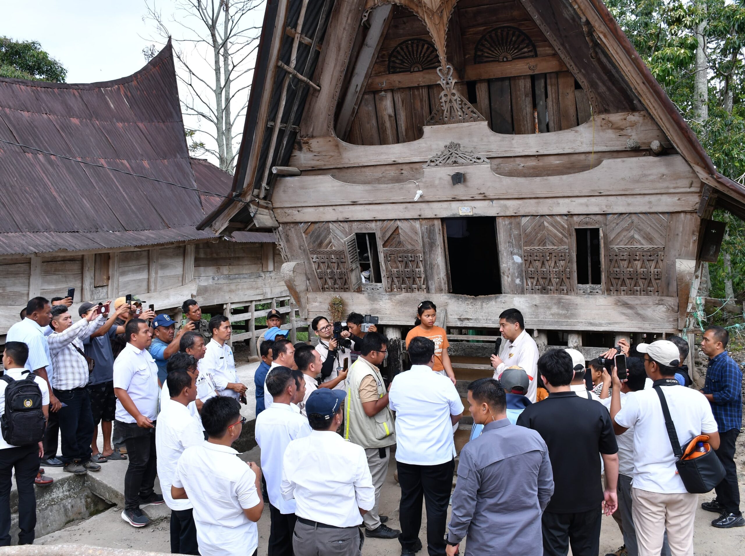 Saat meninjau salah satu rumah di kawasan Lumban Sinaga, Maruarar sempat berdialog dengan seorang warga, Rani Situmeang. Setelah melihat kondisi rumah adat milik keluarga tersebut, ia langsung meminta agar rumah tersebut masuk dalam program renovasi.