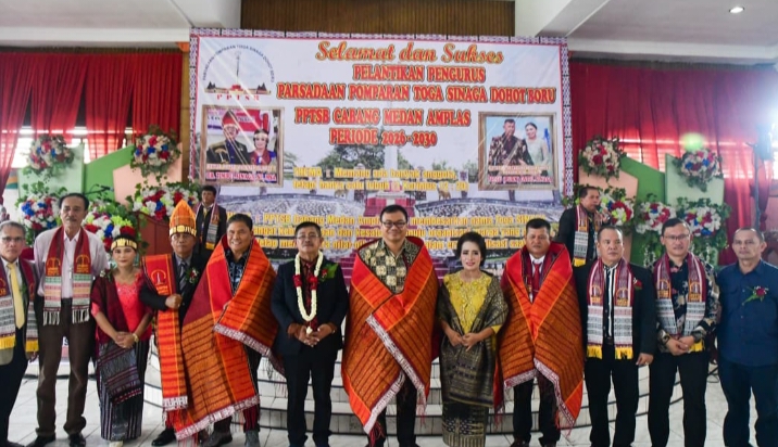 TANJUNG MORAWA, Sinarsergai.com – Bupati Deli Serdang, dr H Asri Ludin Tambunan, menghadiri pelantikan kepengurusan Parsadaan Pomparan Toga Sinaga dohot Boru (PPTSB) Cabang Medan Amplas periode 2026–2030 di Wisma Tamora Indah, Tanjung Morawa, Minggu (12/4/2026).