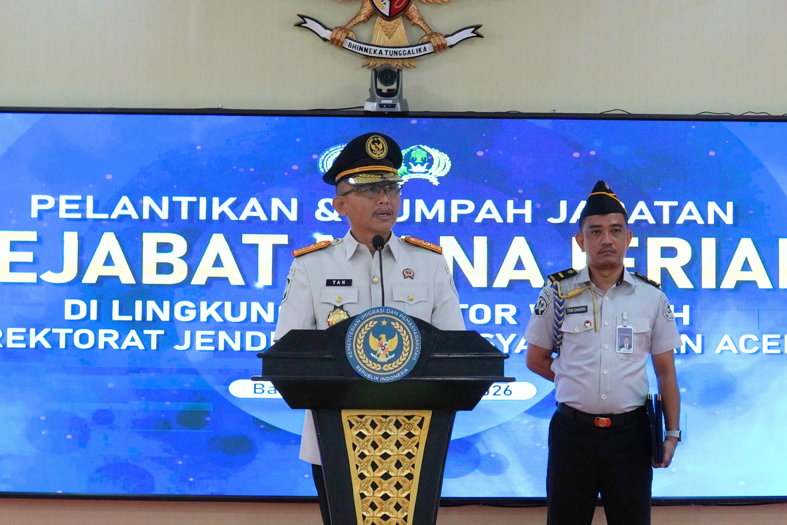 Prosesi yang berlangsung khidmat tersebut dipimpin langsung oleh Kepala Kantor Wilayah Ditjenpas Aceh, Yan Rusmanto. Sebanyak 33 pejabat manajerial, yang mencakup Kepala Rumah Tahanan Negara (Rutan) hingga pejabat struktural, secara resmi mengikrarkan sumpah jabatan mereka di bawah saksi Kabag TU dan Umum, Yusrizal, serta Kabid PK, Sangapta Surbakti.