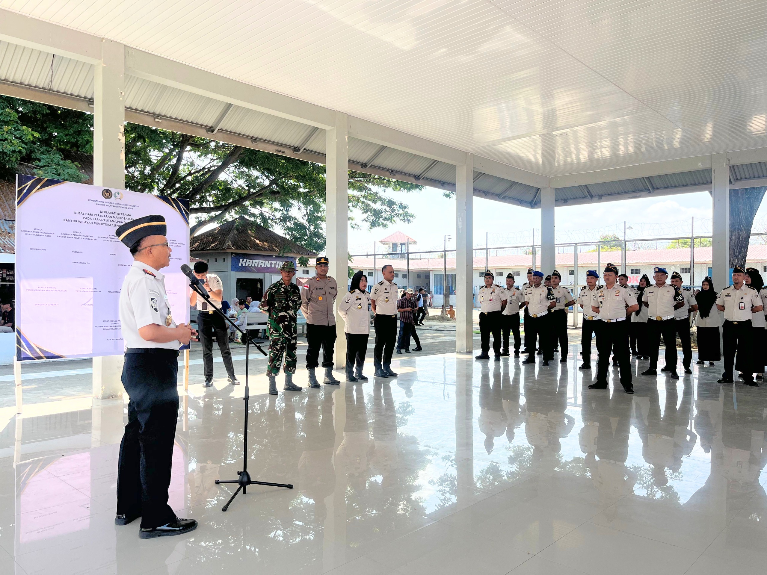 Acara yang berlangsung khidmat ini dipimpin langsung oleh Kakanwil Ditjenpas Aceh, Yan Rusmanto, didampingi jajaran pimpinan tinggi pratama, yakni Kabid Patnal Edi Mulyono, Kabid Pembinaan Peristiwa Br. Sembiring, serta Kabid PK Sangapta Surbakti. Hadir pula para Kepala Unit Pelaksana Teknis (UPT) se-Banda Aceh dan Aceh Besar, serta unsur TNI dan Polri sebagai mitra strategis keamanan.