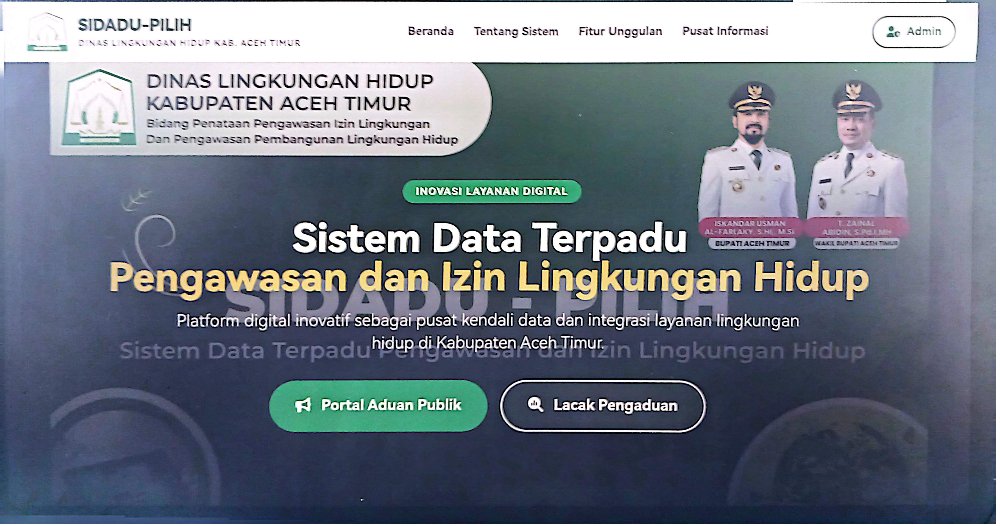 ACEH TIMUR – Dinas Lingkungan Hidup Kabupaten Aceh Timur resmi memperkenalkan inovasi digital terbaru bernama SIDADU-PILIH (Sistem Data Terpadu Pengawasan dan Izin Lingkungan Hidup). Platform ini hadir untuk mempermudah pelayanan perizinan dan pengawasan lingkungan secara modern, transparan, dan efektif.